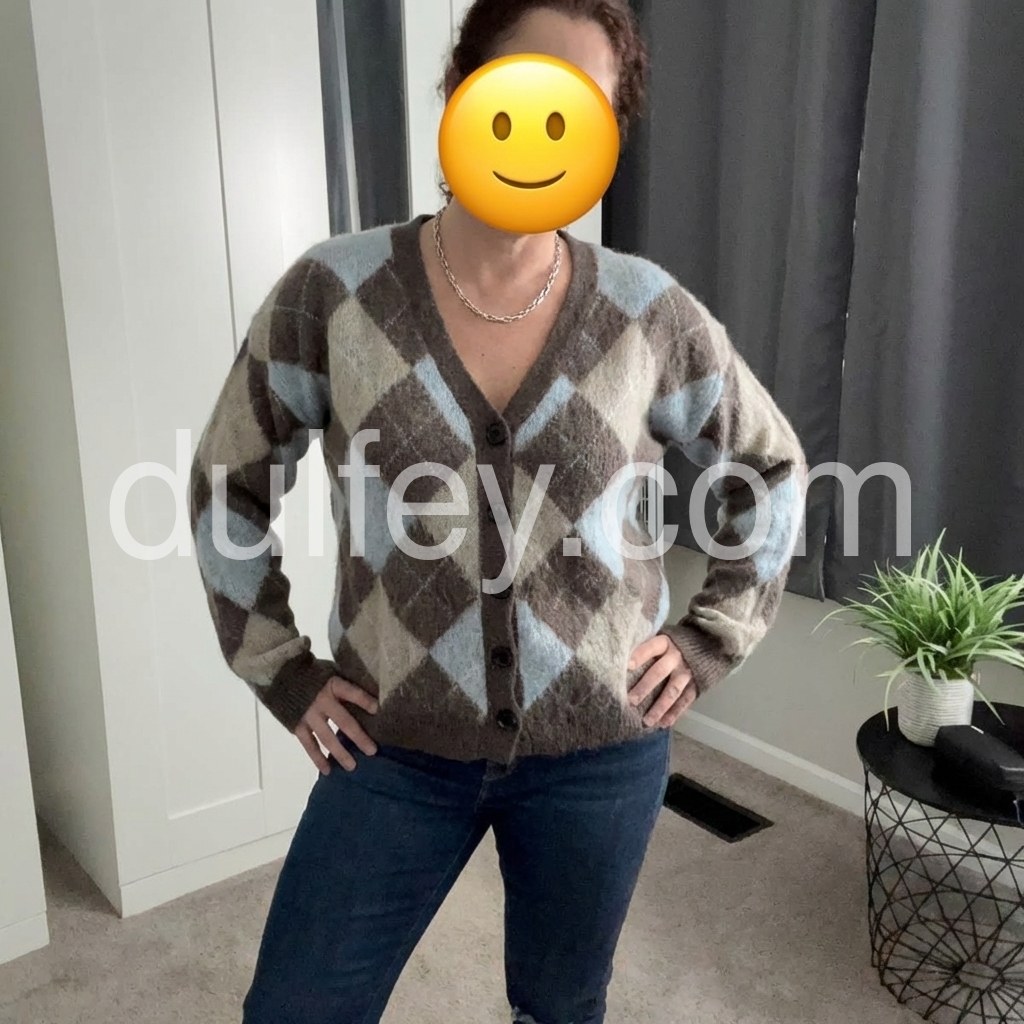Argyle Geometric Print Cardigan With Button Front In Neutral Tones