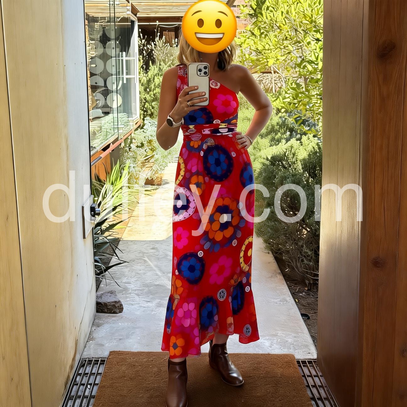Available in three eye-popping, colorful prints, this maxi dress is both fun and fashionable. Designed in a comfortable fabric and figure-friendly silhouette, the floor-skimming dress is styled with a sexy one-shoulder cut, ruched waistband and hand pockets. Wear yours with chunky hoops and chain-strap sandals.