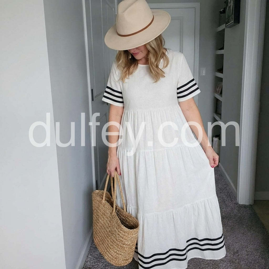 This Groovy Round Neck Short Sleeve Maxi Dress combines classic design with modern comfort. Featuring a flattering round neckline and short sleeves, it offers ease of movement and breathability. The maxi length provides versatile styling options, suitable for both casual and semi-formal occasions. Crafted to balance style and practicality, this dress is an essential addition to a refined wardrobe.