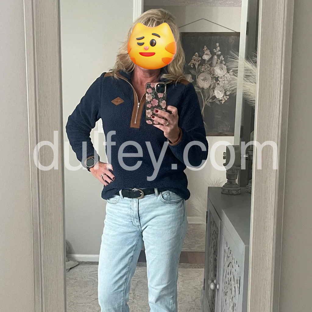 Navy Fleece Half Zip Color Block Sweatshirt Elevate your casual wardrobe with this versatile half-zip sweatshirt, engineered from premium fleece for superior warmth and comfort. The striking color block design adds contemporary visual interest, while the half-zip construction offers adjustable layering options for transitional weather. Crafted for durability and easy care, this piece transitions seamlessly from weekend wear to relaxed office settings. The structured fit and quality construction ensure lasting appeal season after season.