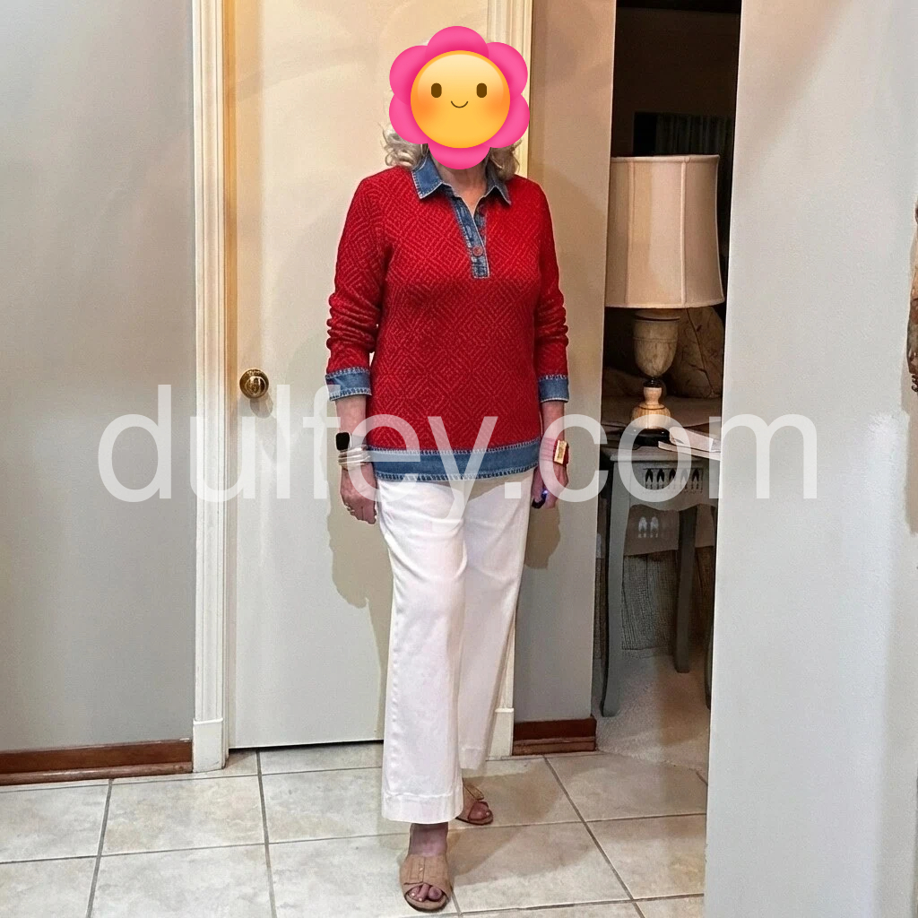 Showy Denim Patchwork Long Sleeve Knit Sweater