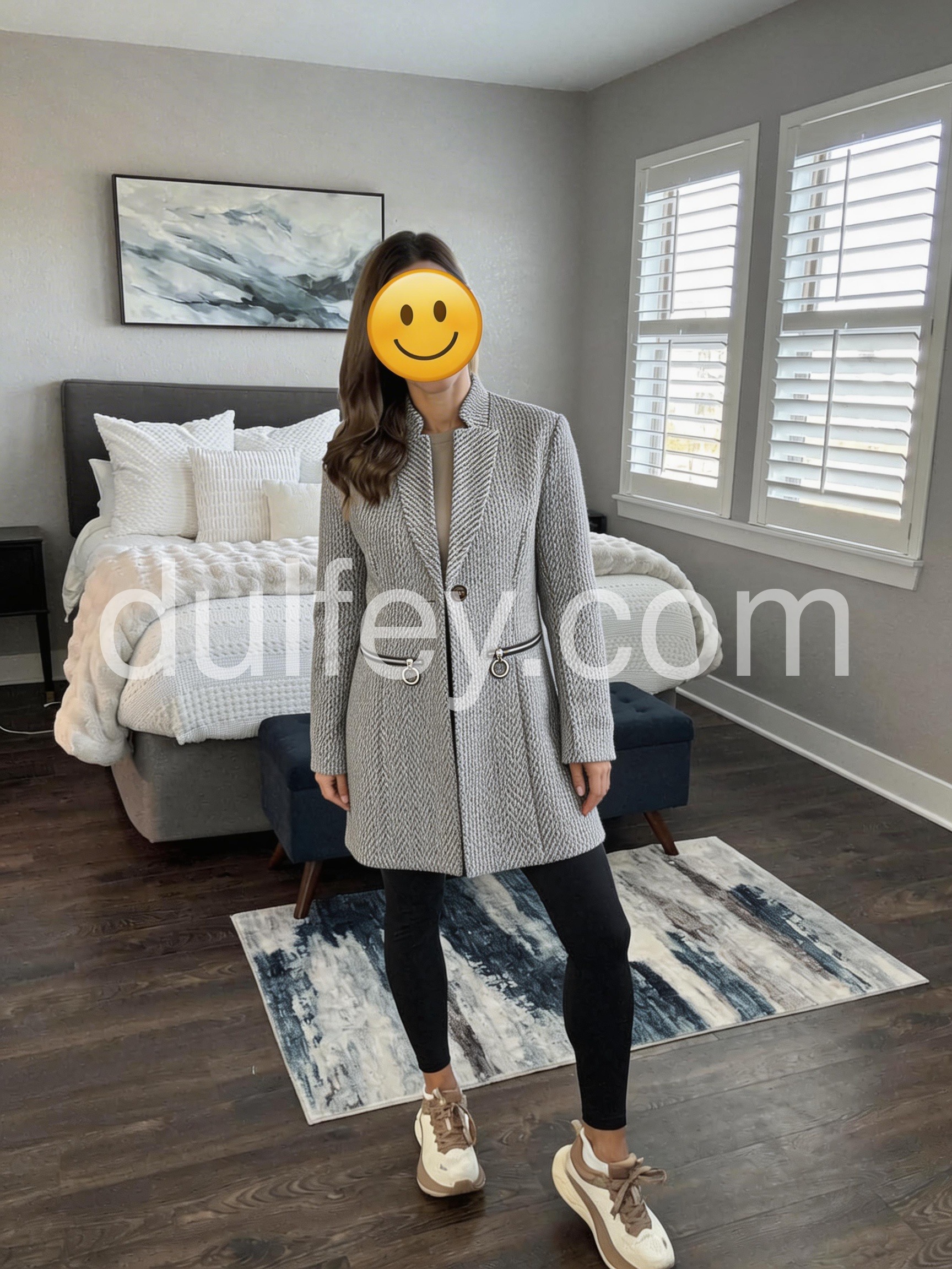 This grey plain pocket long sleeve outerwear is the perfect lightweight layer for everyday wear. Its loose-fitting design provides comfortable wear, while two pockets provide practical storage for small items. Made of lightweight fabric, this outerwear is breathable and perfect for all-day wear.