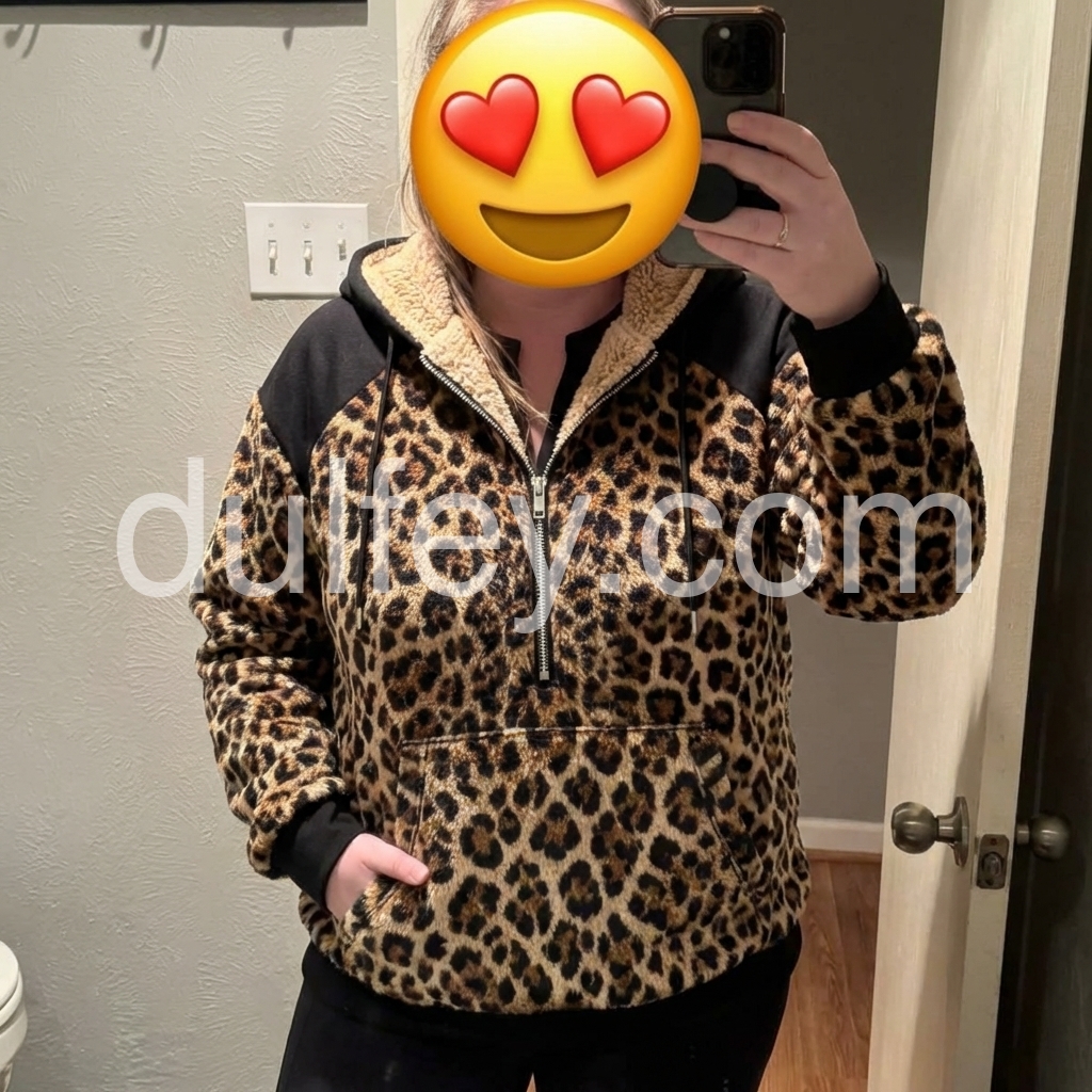 Bold Leopard Print Fuzzy Lined Sweatshirt