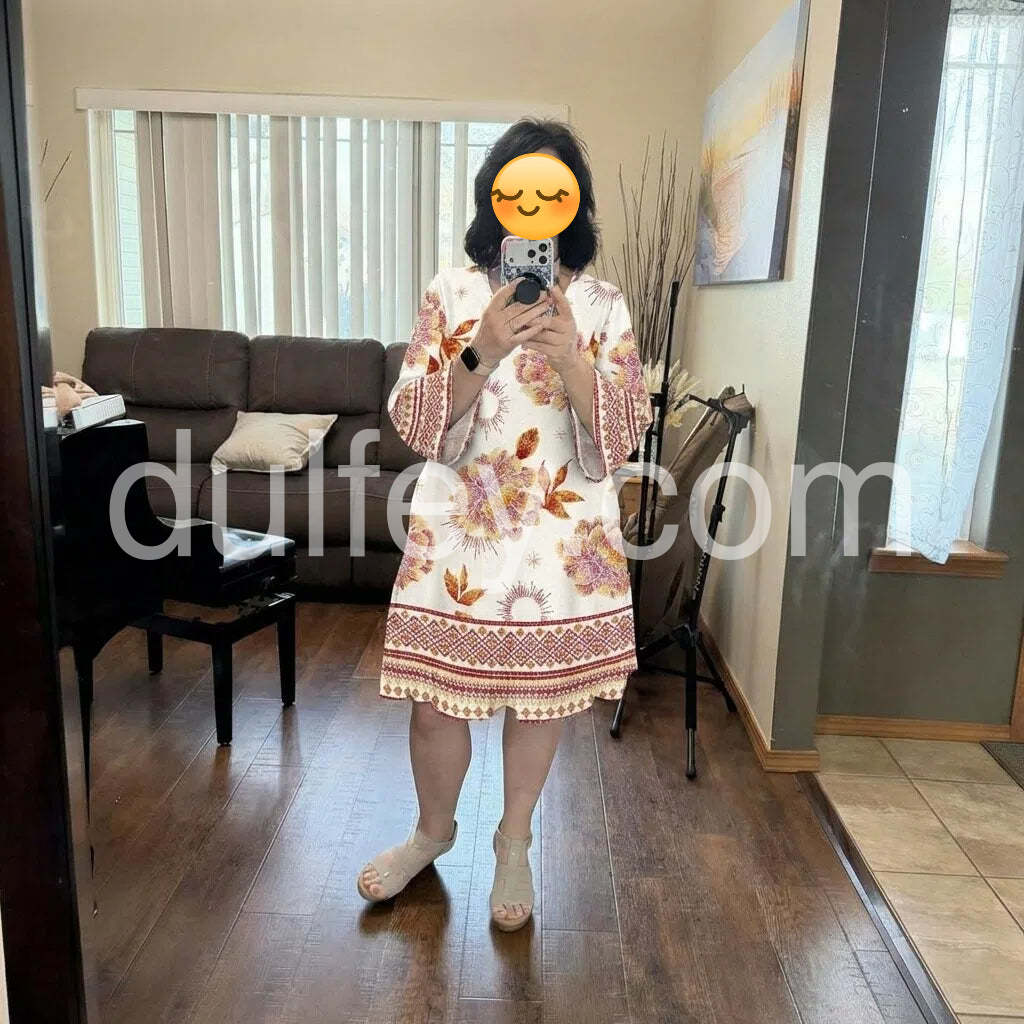 This long sleeve mini dress features a unique floral print, adding a touch of elegance to your wardrobe. With its comfortable and stylish design, this dress is perfect for any occasion. Made from high-quality materials, it offers both durability and style. Elevate your look with this one-of-a-kind dress.