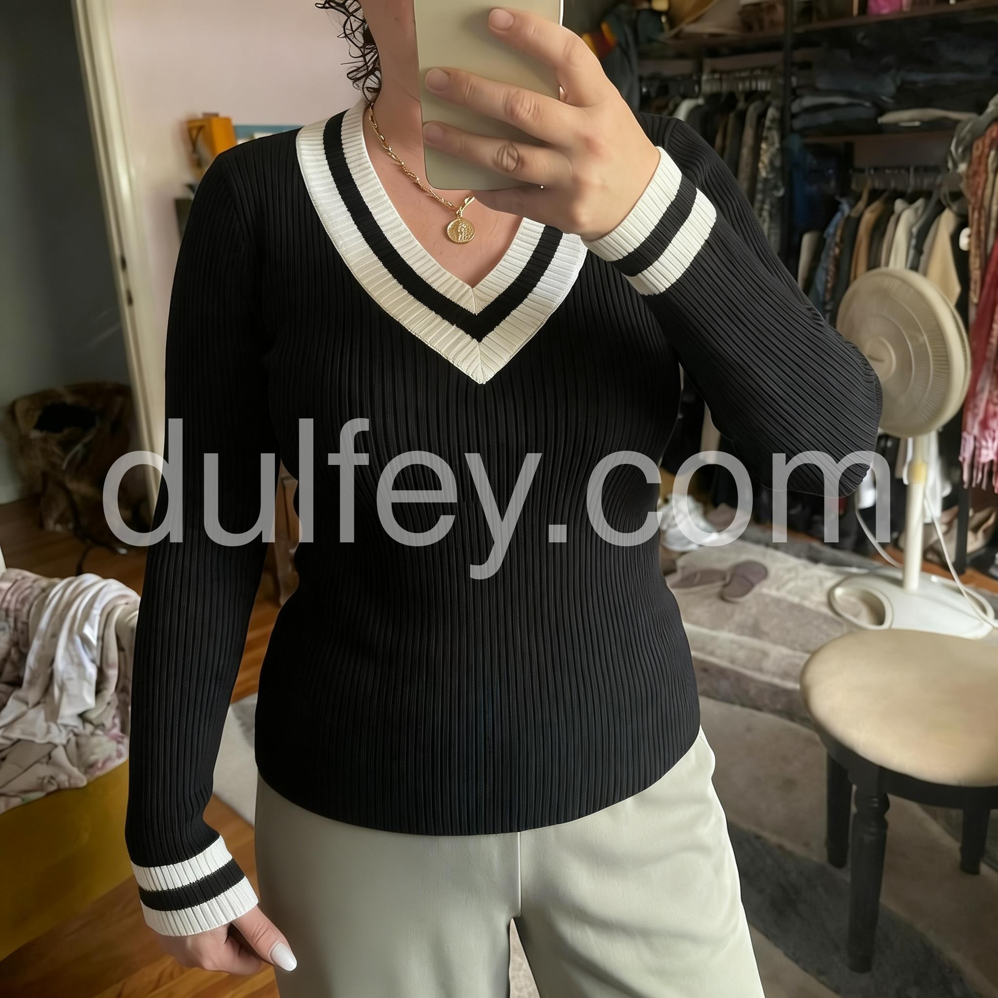 Elevate your style with our Black And White Color Block Sweater. This trendy and versatile sweater features a bold color block design, adding a touch of modernity to any outfit. Made with high-quality materials, this sweater is both comfortable and durable, making it a must-have for any fashion-forward individual.