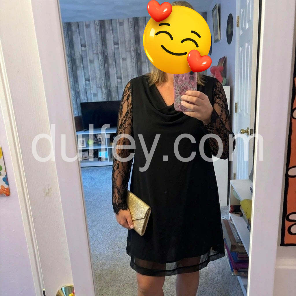 Elevate your evening wardrobe with this sophisticated black mini dress, designed for those who appreciate refined elegance. The delicate lace sleeves add an intricate textural element that balances the clean simplicity of the plain bodice, while the flattering V-neckline creates a graceful silhouette. Perfect for cocktail events, date nights, or upscale casual occasions, this piece transitions seamlessly from day to night. The mini length offers a modern, youthful edge without compromising on polish. A versatile foundation piece that pairs effortlessly with heels, statement jewelry, or layered accessories for endless styling possibilities.