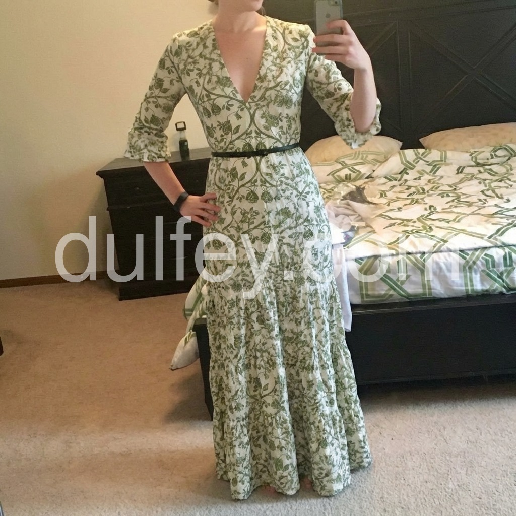 Green V-Neck 3/4 Sleeve Maxi Dress