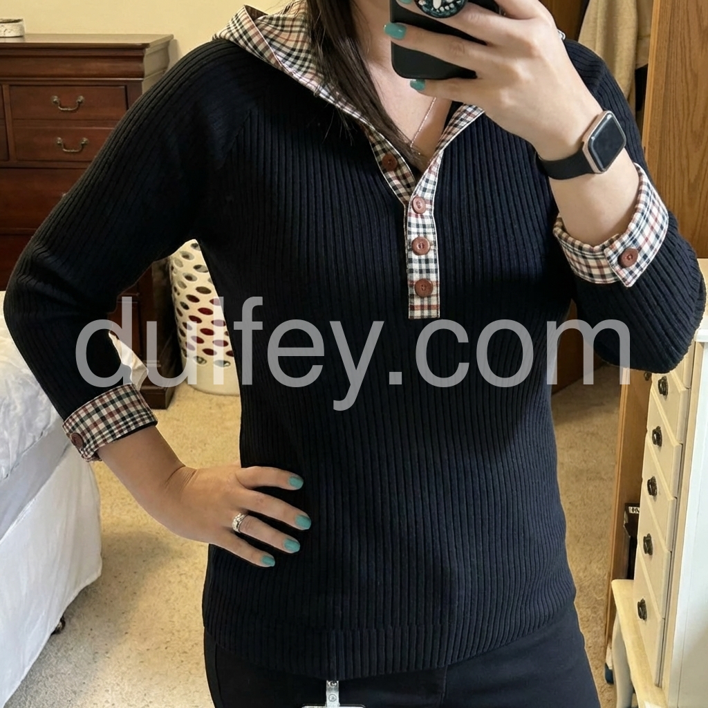 This long sleeve sweatshirt combines classic comfort with refined detailing. The black base provides versatile styling options, while the check trim accents add visual interest and a polished touch. Crafted for everyday wear, it delivers the warmth and durability you'd expect from a quality sweatshirt. The long sleeves offer extended coverage, making it ideal for layering or wearing solo during cooler seasons. A dependable wardrobe staple that balances casual ease with understated sophistication.